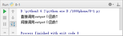 在例8-3中,第3行列表list1中的每个元素为元组,元组中的第一个元素为函数output()的函数名,第4行遍历列表list1,第5行相当于间接调用output()函数。