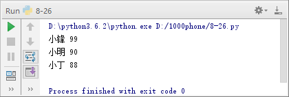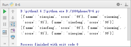 2 {'name':'小锋', 'sex':1, 'score':99}, # 1代表男性