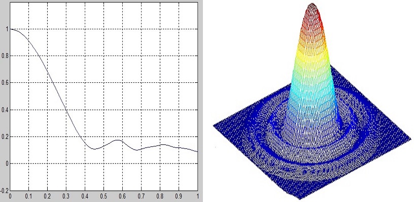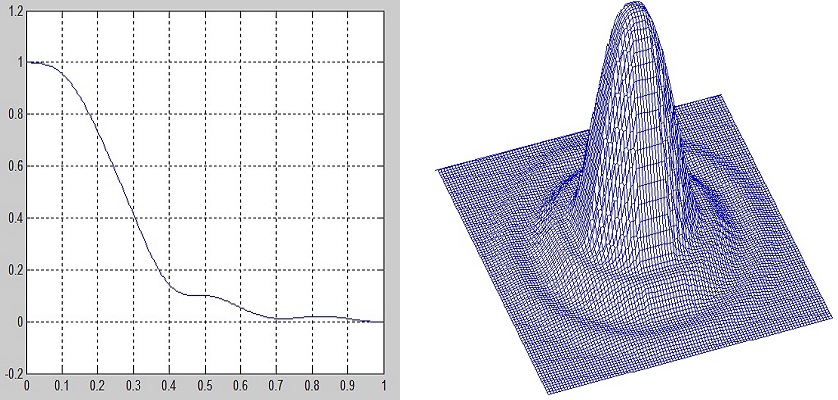 由21个离散点[1, 0.979, 0.9179, 0.8222, 0.7006, 0.5638, 0.4234, 0.2909, 0.1762, 0.1123, 0.12, 0.152, 0.1745, 0.13, 0.1, 0.1171, 0.1285, 0.1409, 0.1234, 0.1158, 0.1]插值而成的邻域函数,如下图所示。
