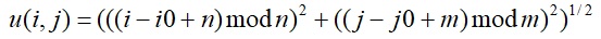 {i, j}={ (i0+r+n) mod n,(j0+s+m) mod m,r,s = -R, -R+1, …, 0, …, R-1, R }