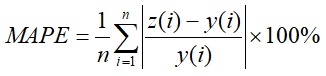 (4)平均绝对百分比误差(mean absolute percentage error,MAPE)