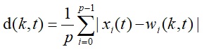 p是网络的输入节点个数,t = 0, 1, …, N-1是样本序号,k=1, 2, …, M是循环次号,那么第k次循环的响应距离为