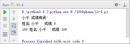 10 print(self.name,'成绩有误!')