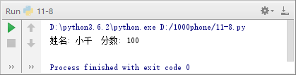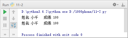 14 return '姓名:' + str(self.name) + '\t成绩:' + str(self.__score)