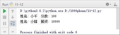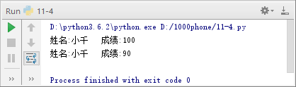5 return '姓名:' + str(self.name) + '\t成绩:' + str(self.score)
