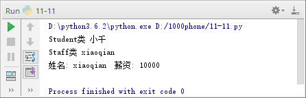 在例11-5中,Student类继承自Person类,第9行使用派生类实例对象调用基类中的公有方法。
