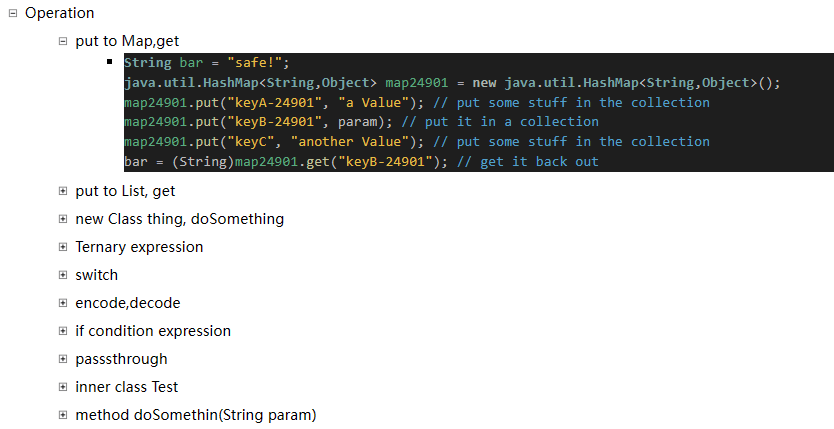 - 当一个好的源将安全数据传递到一个潜在的坏接收器时,采用例如:goodG2B()、goodG2B1()、goodG2B2()、goodG2B3() 的方式命名;