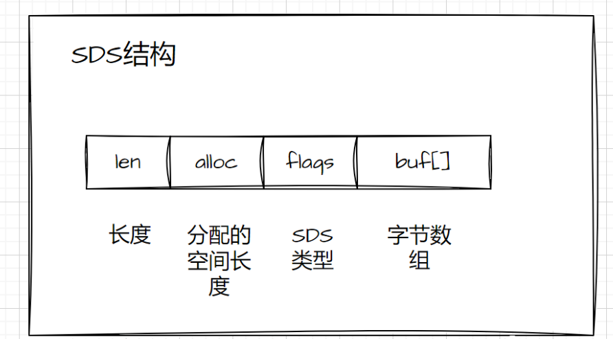 SDS的结构可如上图所示 其中有一个字段记录了字符串长度,这样每次获取长度的复杂度就为O(1),alloc 记录了分配给这个字段的长度,每次修改字段内容时,以此判断是否需要扩容,flags记录了SDS的类型 ,这里不详细展开,感兴趣的小伙伴可以自行了解一下,buf[] 记录的就是字段实际存储的内容。