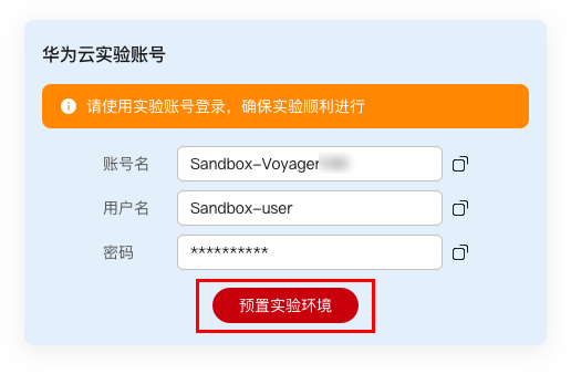 注意:开始实验之前请点击手册上方"预置实验环境"按钮。