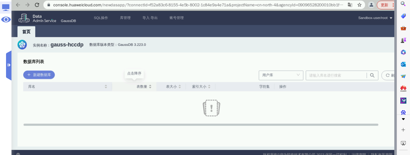 1. 进入云数据库GaussDB服务,点击左侧的【服务列表】,选择其中【数据库】下的【云数据库GaussDB】。