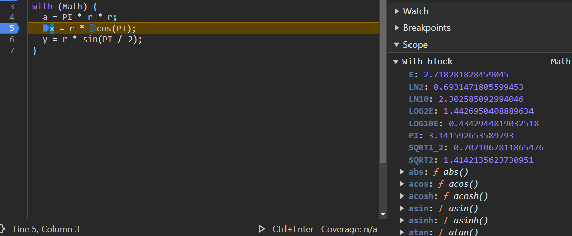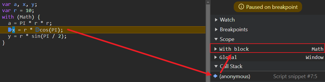 可以用 Chrome DevTools 中的 Scope 面板来演示上例代码在执行过程中的的作用域变化: