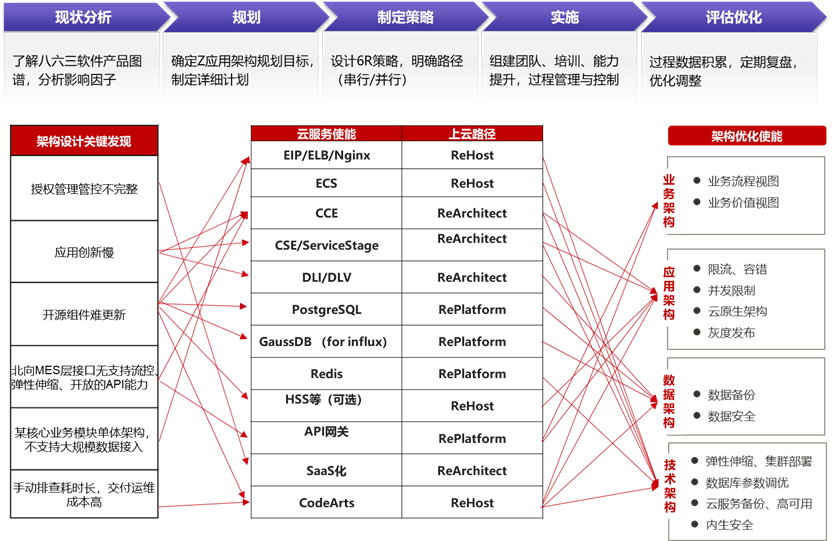 制定策略:联合规划目标架构与技术选型,综合行业需求和客户规模差异化等因素,选择合适云化改造策略和路径。