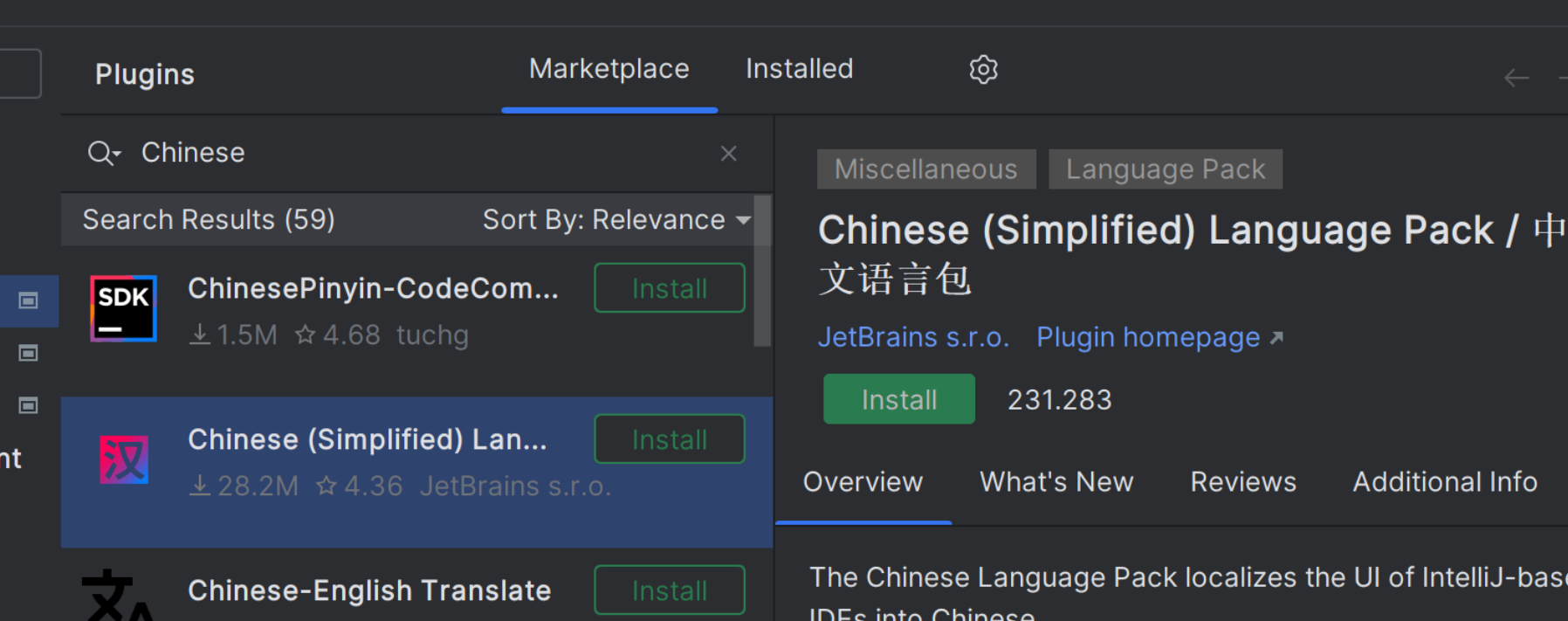 为了演示方便,我们下载一个中文插件: