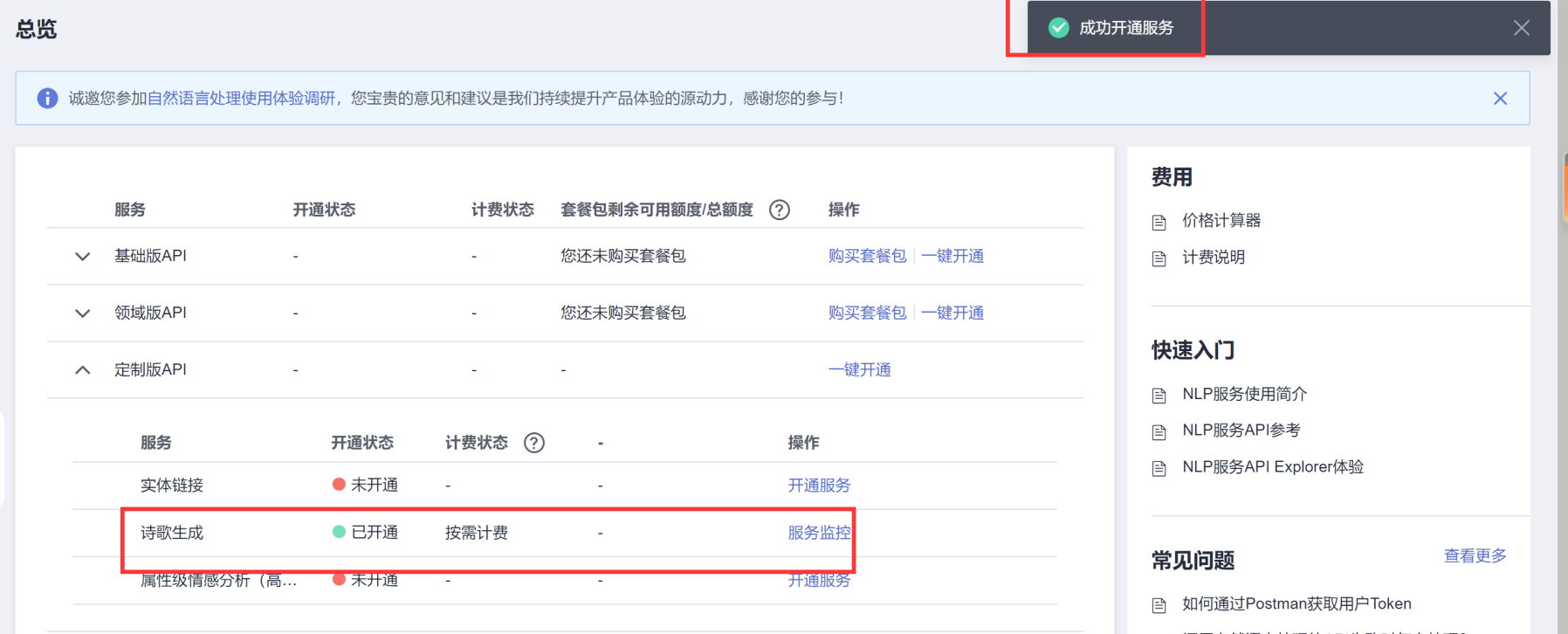 调用前需要开通服务:https://console.huaweicloud.cn/nlp/#/nlp/overview