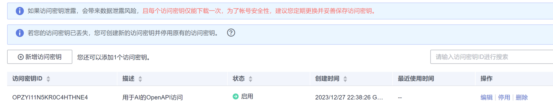 到这里呢,第一个实战就结束了,后面的实战对应的开通以及AK/SK获取与这个操作步骤相同。