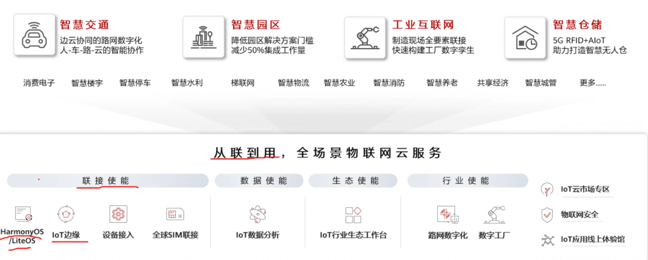提供了丰富的SDK,以及适配HarmonyOS和LiteOS终端设备,同时还有IOT的边缘服务,方便更方便的扩展,设备接入是华为云的核心功能,全球SIM链接,对于一些移动场景下的设备接入蜂窝网络。