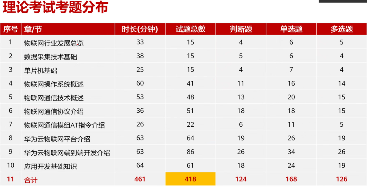 在重点知识方面,数据采集技术基础、单片机基础、物联网操作系统、通信技术、华为云物联网平台介绍等知识点涵盖丰富。