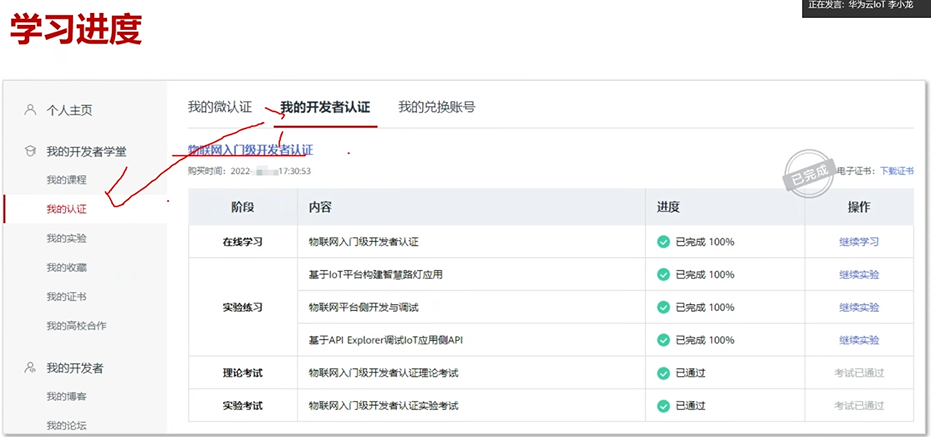 该认证提供全面的物联网开发者知识体系和实践机会,通过考试后可获取认证证书。