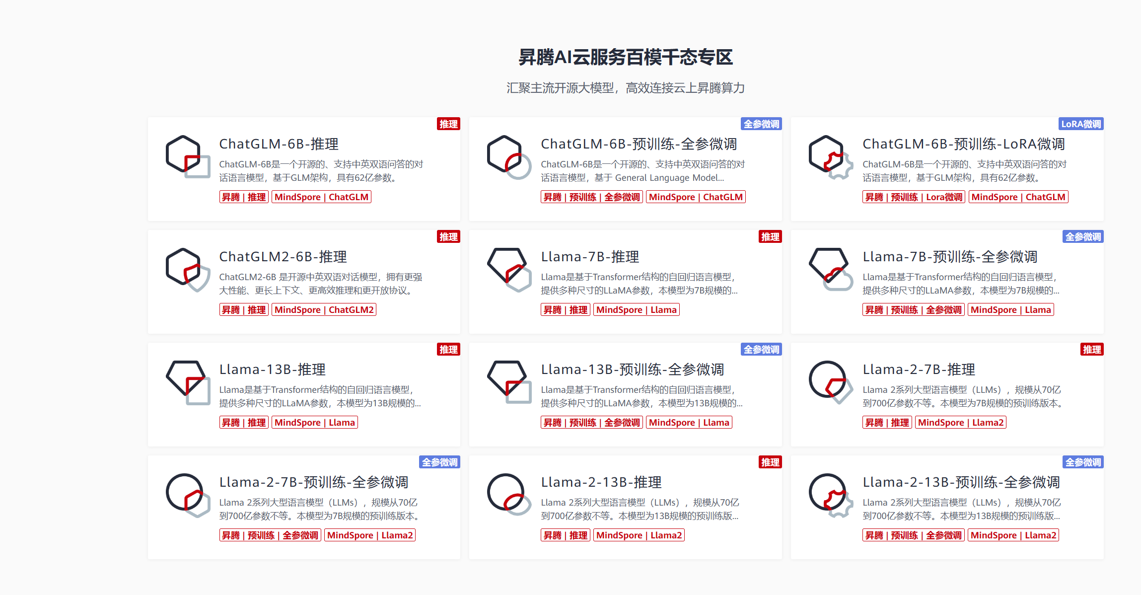 提供基于异腾AI云服务适配的业界主流开源大模型,易用开发工具和超强算力,助力企业和开发者快速创建模型应用,在大模型时代快人一步。