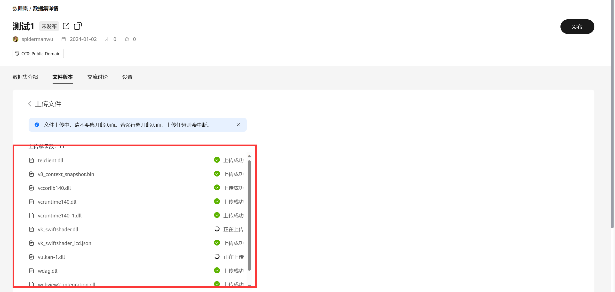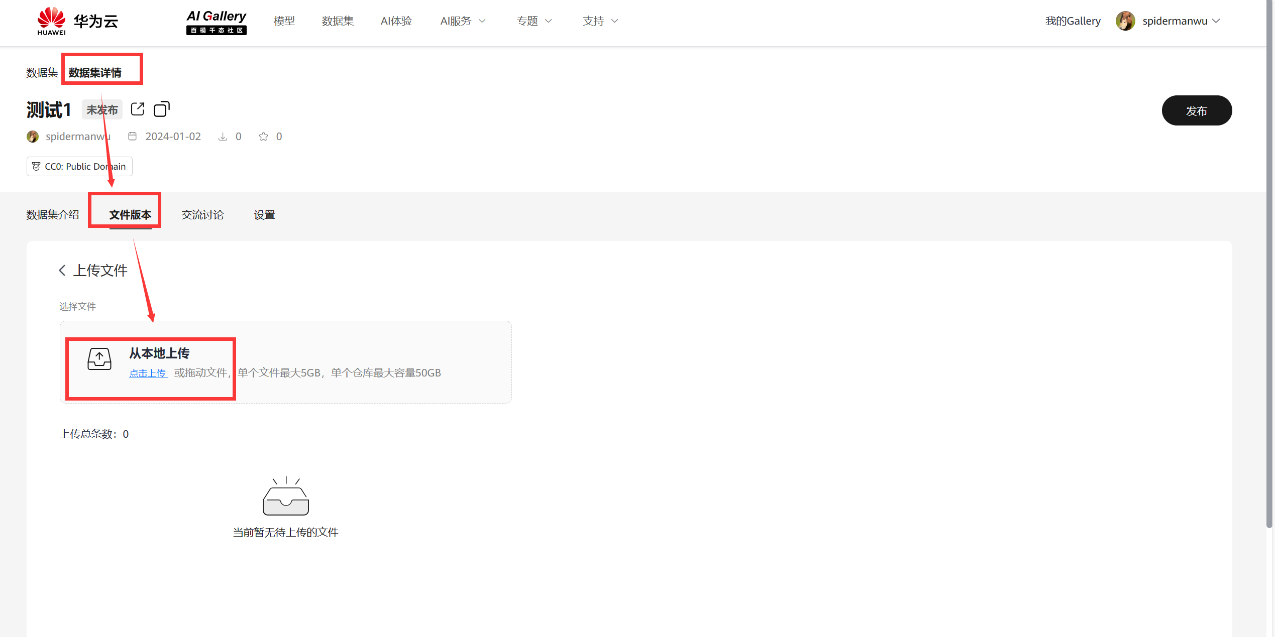 步骤2:选择文件上传单个文件最大支持5GB,单个仓库50GB