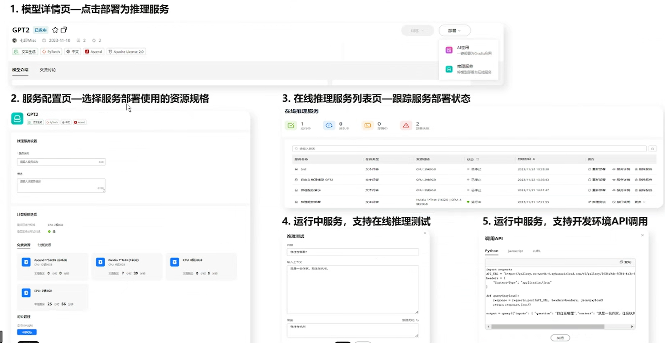 2.2 AI工具链服务——新增在线推理服务, 支持一键部署, 推理测试与API调用