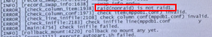 问题分析:raid(noraid) is not raid1,这个报错是LLD配置规划工具填写配置时,元数据分区raid类型选择了raid1,但是元数据盘raid类型是nonraid导致