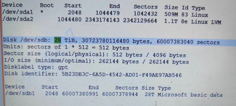解决方案:数据盘大小超过20T,重新做raid将数据盘大小降至20T以下