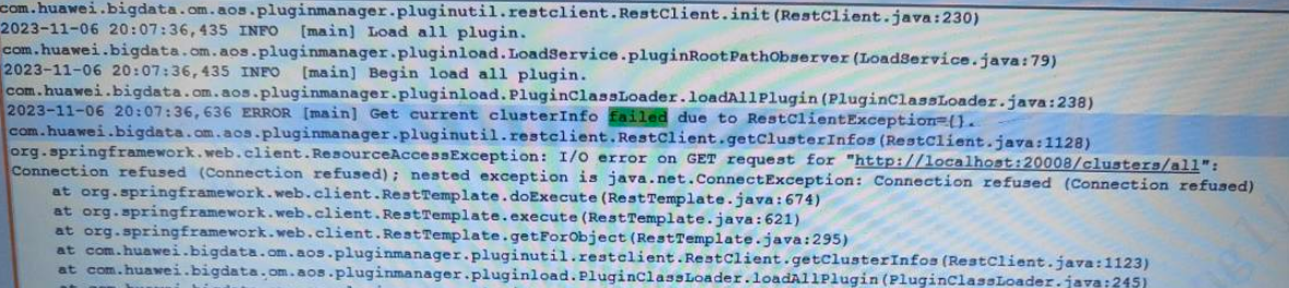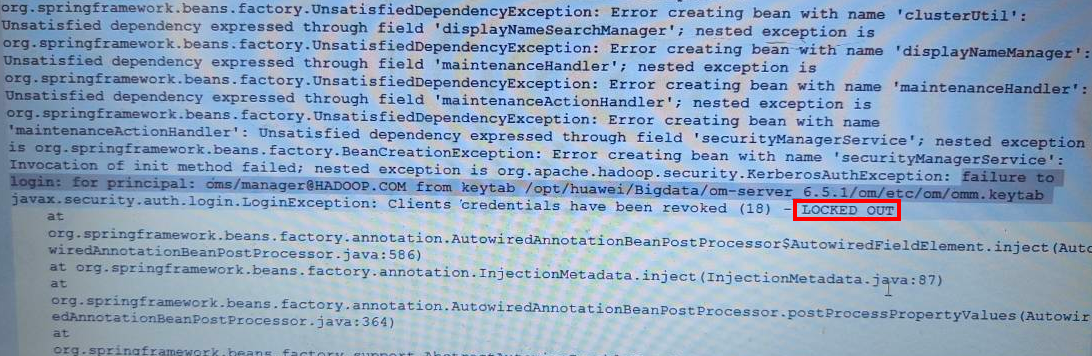 查看nodeagent启动日志中有连接本地20008端口失败,连接被拒,且查看controller日志(/var/log/Bigdata/controller/controller.log)有LOCKED_OUT异常信息打印,这种一般是由于铲除集群时没有正常卸载老集群,未重装OS,直接使用老服务器安装集群,老集群残留的nodeagent进程不停的连接主oms导致controller被锁,新装oms节点的nodeagent连接controller时连接失败
