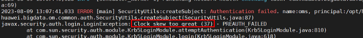 问题分析:此步骤失败一般为nodeagent进程异常导致,检查主备oms节点nodeagent进程发现备oms节点的nodeagent进程一直在重启,查看nodeagent日志(/var/log/Bigdata/nodeagent/agentlog/agent.log)中报错时差过大