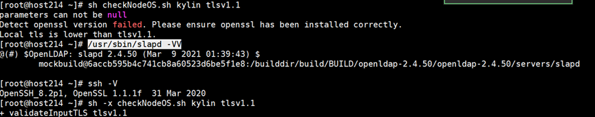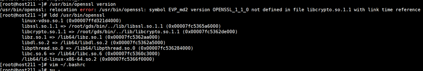 sh checkNodeOS.sh kylin tlsv1.1 手动检查,执行失败,检查openssl失败,手动执行openssl version检查openssl版本,执行失败,使用ldd检查openssl依赖库,发现异常节点引入了gds依赖库