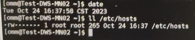 检查失败节点omm用户,omm用户已删除,但是创建用户失败,麒麟V10OS,排查/etc/uid_list中存在omm用户残留信息,尝试删除残留信息失败,该文件被锁定,重装OS后安装成功