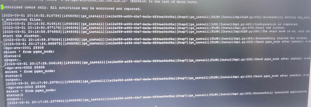 继续排查gs_install日志(/var/log/Bigdata/mpp/omm/om/gs_install*.log),发现更新pgxc_node&创建node group失败;