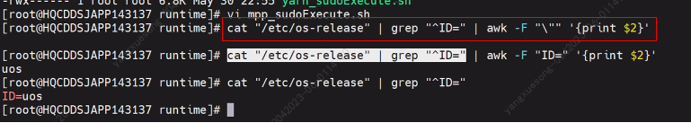 问题分析:查看第一个数据节点的postinstall日志(/var/log/Bigdata/mpp/scriptlog/postinstall.log),日志报错set OS parameter failed,无其他报错信息打印;报错日志上一行打印the os is not suse or redhat or centos or euleros;怀疑是检测os时异常,继续排查/etc/os-release,os-release中ID=uos未添加双引号“”,导致获取os失败