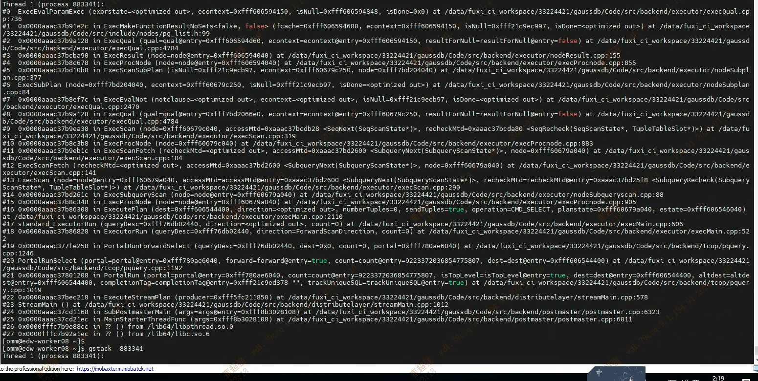 持续观察堆栈情况,该堆栈内容持续变化,说明当前非死锁。是业务慢导致。