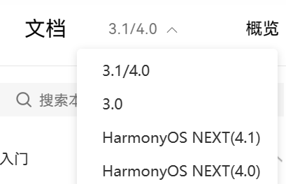 页面上面的一行淡黄色的小字,告诉我们这个文档是鸿蒙 3.1/4.0 共用的。这也让我注意到文档边上的版本下拉框: