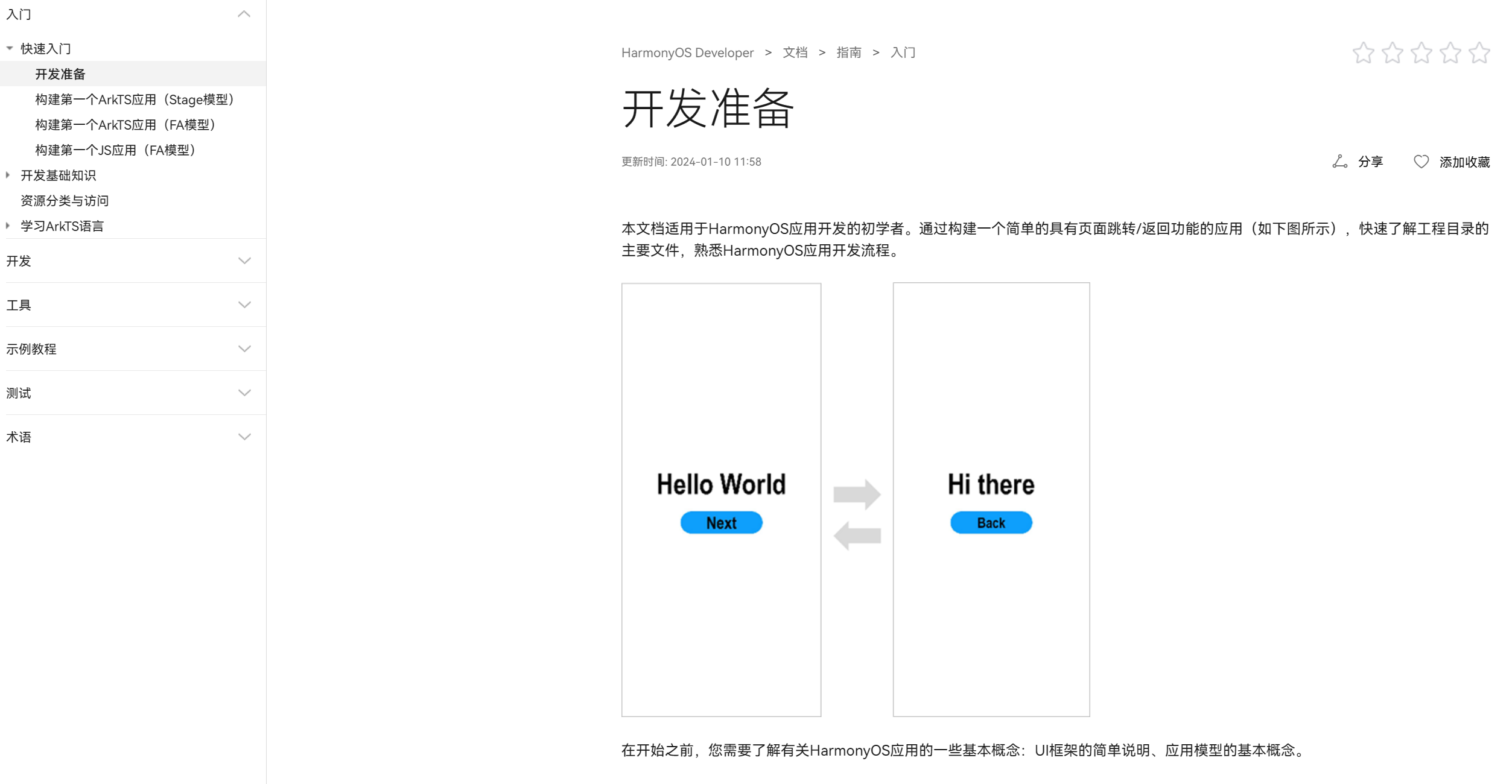 我是小白,从头开始。按导航从头开始,进入“开发准备”。