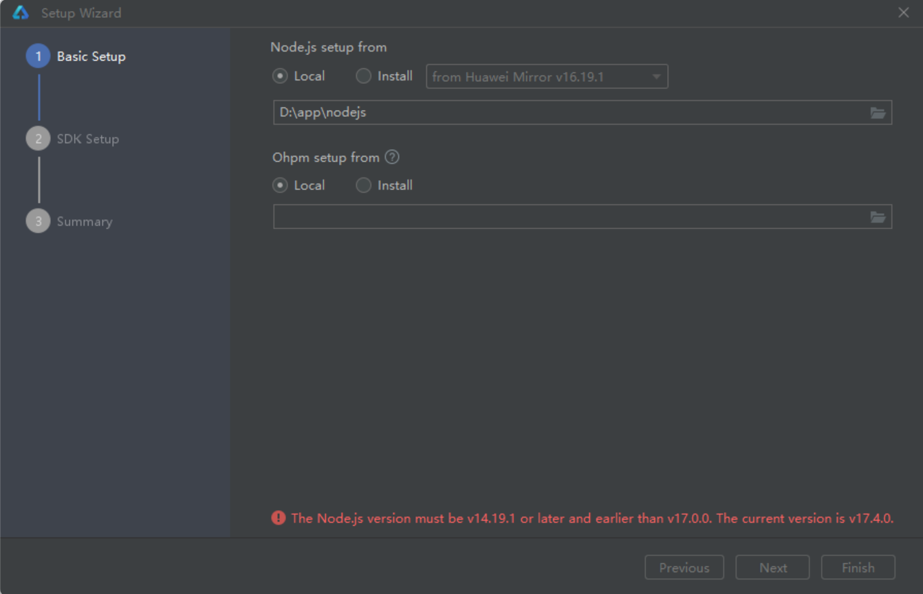 安装完了立刻卡壳了。node.js 本地版本是符合要求的,可还是给出了错误提示。