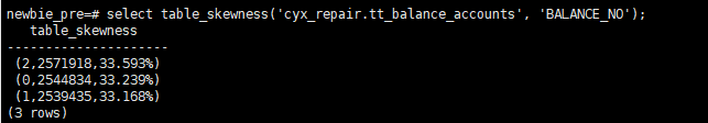 - 查询该表分别关于BALANCE_NO 以及 app_id(分布列)的倾斜情况