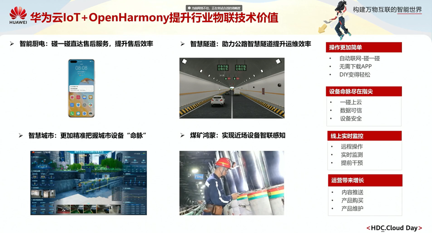 华为云IoT 通过与鸿蒙相结合的模式,提供多样化的能力开放,提升各行业数字化方案构建效率。面向软硬件开发者,IoTDA提供设备全场景快速接入,灵活数据模型设计,多种数据开放能力。IoTEdge聚焦现场业务闭环,为开发者提供边缘可插拔式数采能力与应用管理,满足各行业多样化诉求。通过智能厨电,智慧隧道,智慧城市等实际案例分享了产业发展的经验。