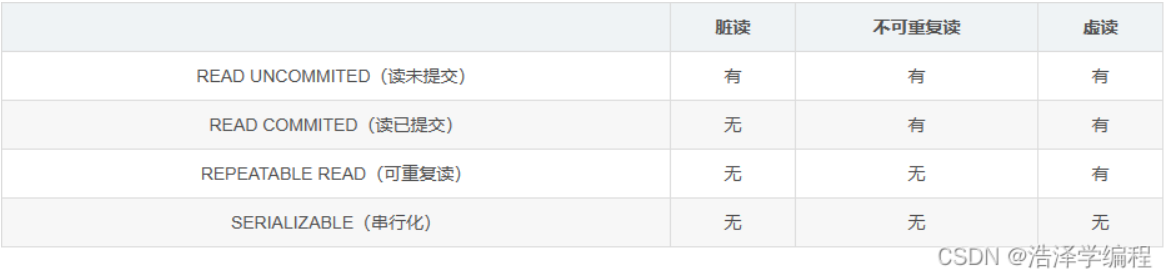 例:事务A和事务B读取同一个数据,但是事务B在读取后进行修改,然后提交,提交后事务A又读取这个数据,此时读取的是修改后的,跟上次读取的不一样。 - 幻读(虚读):一个未提交的事务读取到另一个提交事务添加数据