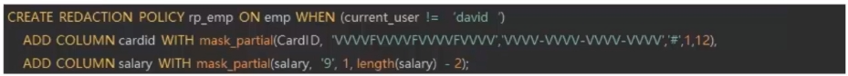 用例一:创建脱敏策略rp_emp,仅HR可查看所有信息,其他人均对银行卡号和薪资不可见,两字段均采用最常见的部分脱敏形式。