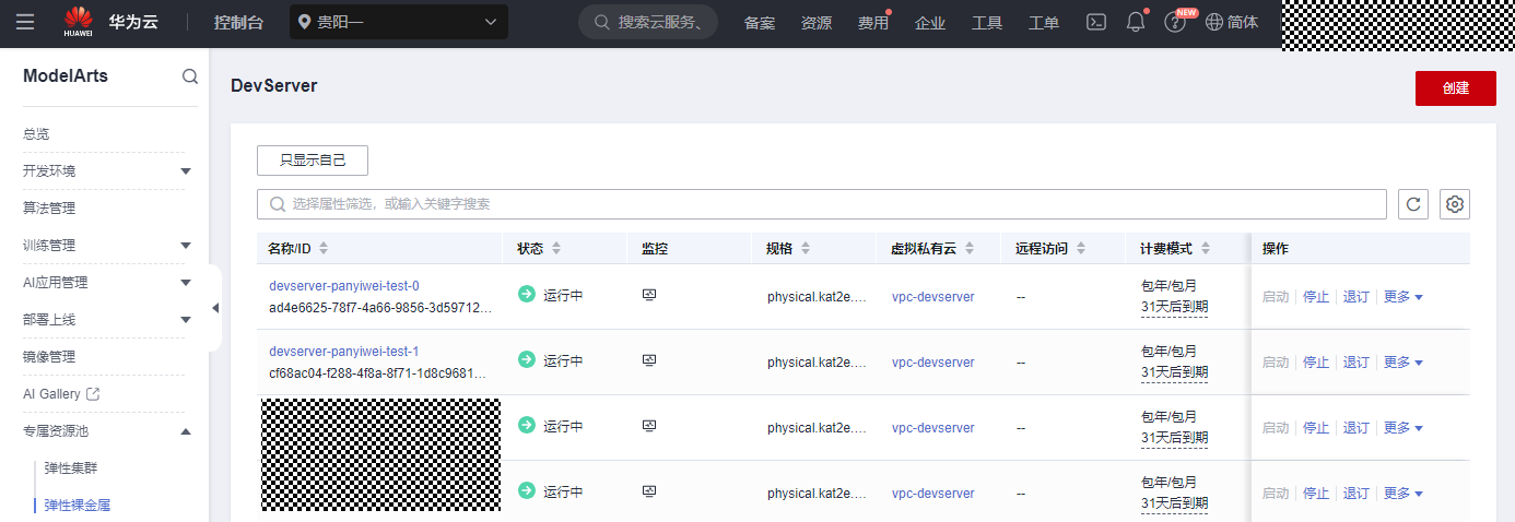 3.1 打开ModelArts裸金属官方页面,复制需要续费的服务器资源的 ID