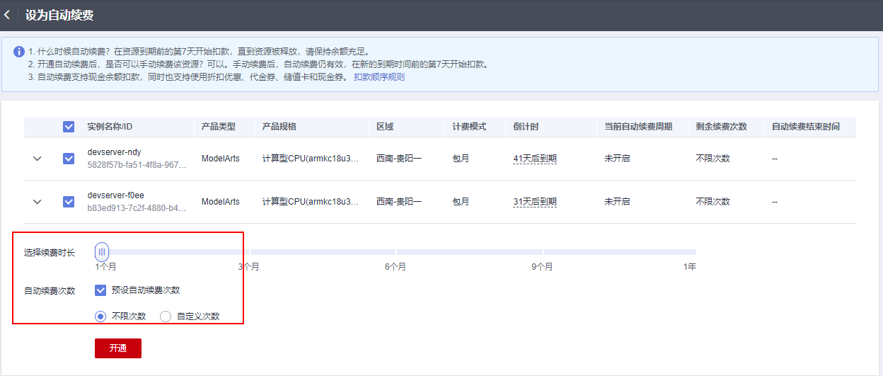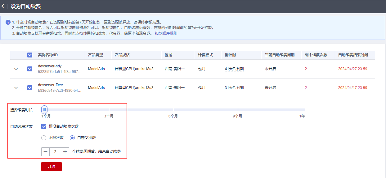 该方案旨在指导如何手动续费或者自动续费华为云ModelArts包周期服务器资源。