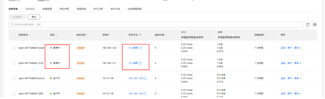 4. 缩容演示:nginx deployment 缩容时,优先缩容弹性至CCI的pod