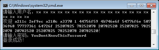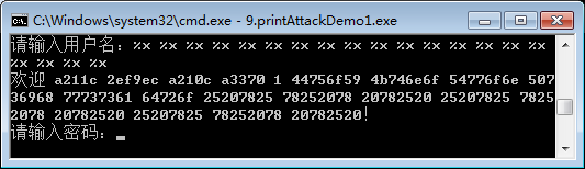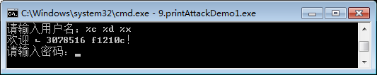 可以看见本来应该保密的密码被当作用户名打印出来了!对于攻击者来说,只要输入刚刚打印出来的密码就能正常登录了,程序的运行结果如图9-37所示: