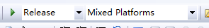 在使用VS进行动态调试前,应先确保项目的当前编译模式为Debug(调试)模式,而不是Release(发布)模式。在Release模式中,编译器会进行各式各样的优化,很可能影响到调试时要查看的变量的值。要改变当前编译模式,只要在工具栏中直接修改即可,如下图所示。