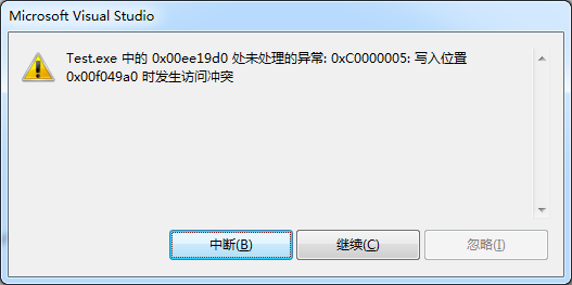 大黄按下回车键,立即看到了VS弹出的错误提示框,如下图。