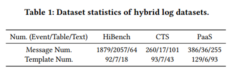 本文定义了混合日志的消息类型包括单行的事件日志(Event Log)、具有清晰的行列结构的表格日志(Table Log)、以及具有跨行文本结构的文本日志(Text Log)。