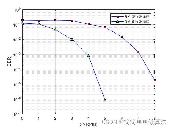 在RM码的译码过程中,通常有两种方法:RM硬判决译码和RM软判决译码。这两种译码方法的主要区别在于它们处理接收信号的方式。