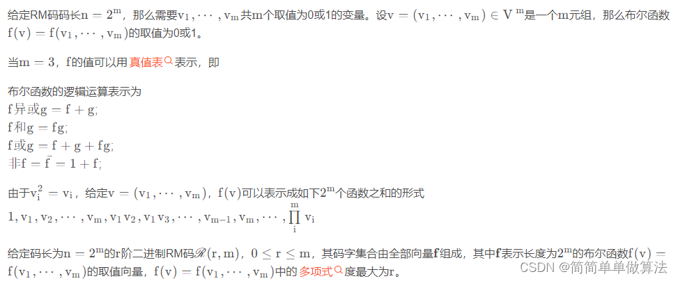 Reed-Muller码 (RM码) 可依赖布尔函数(Boolean Functions)进行定义。